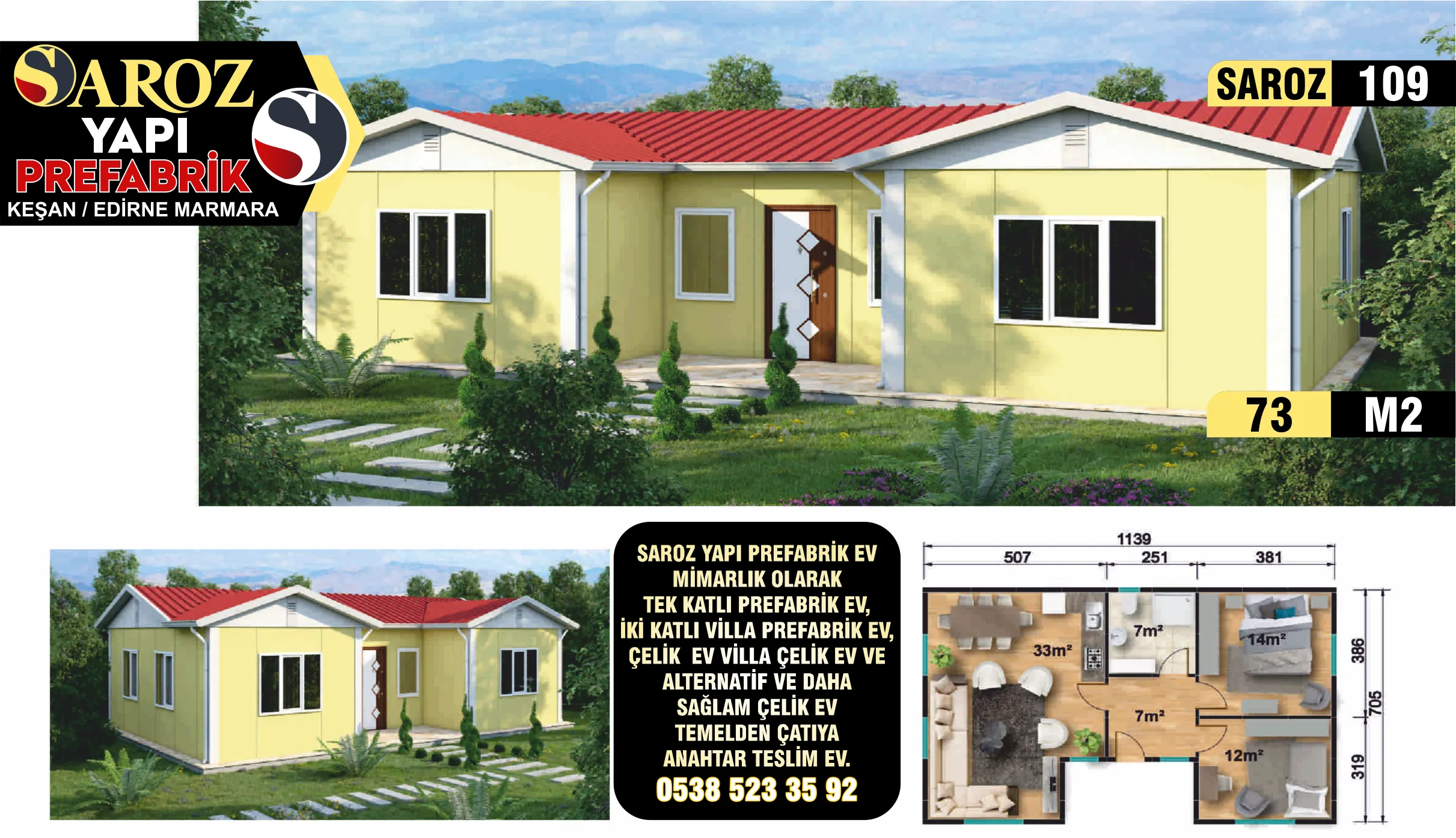 109 – 73m² Tek Katlı Prefabrik Ev