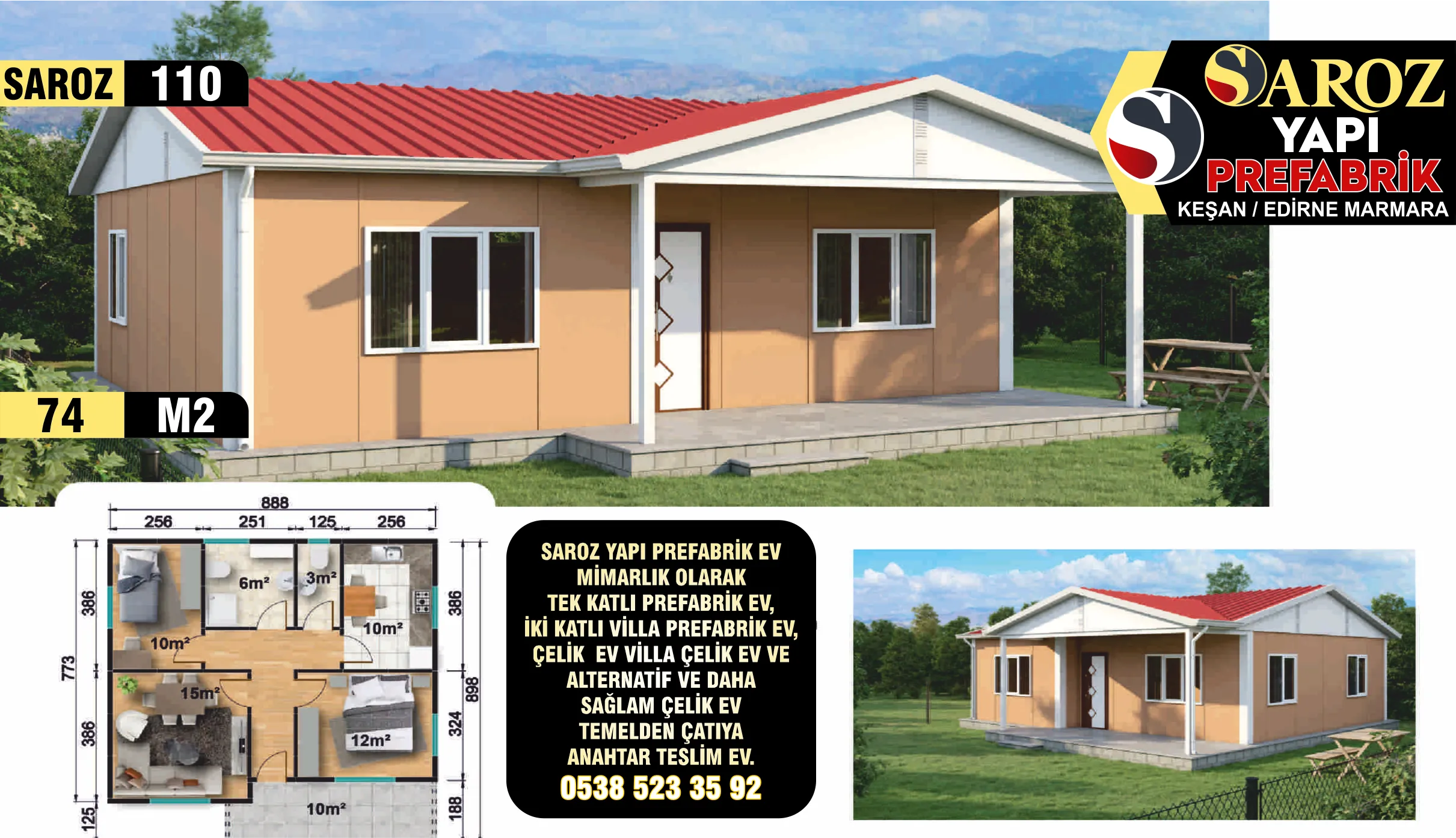 110 – 74m² Tek Katlı Prefabrik Ev